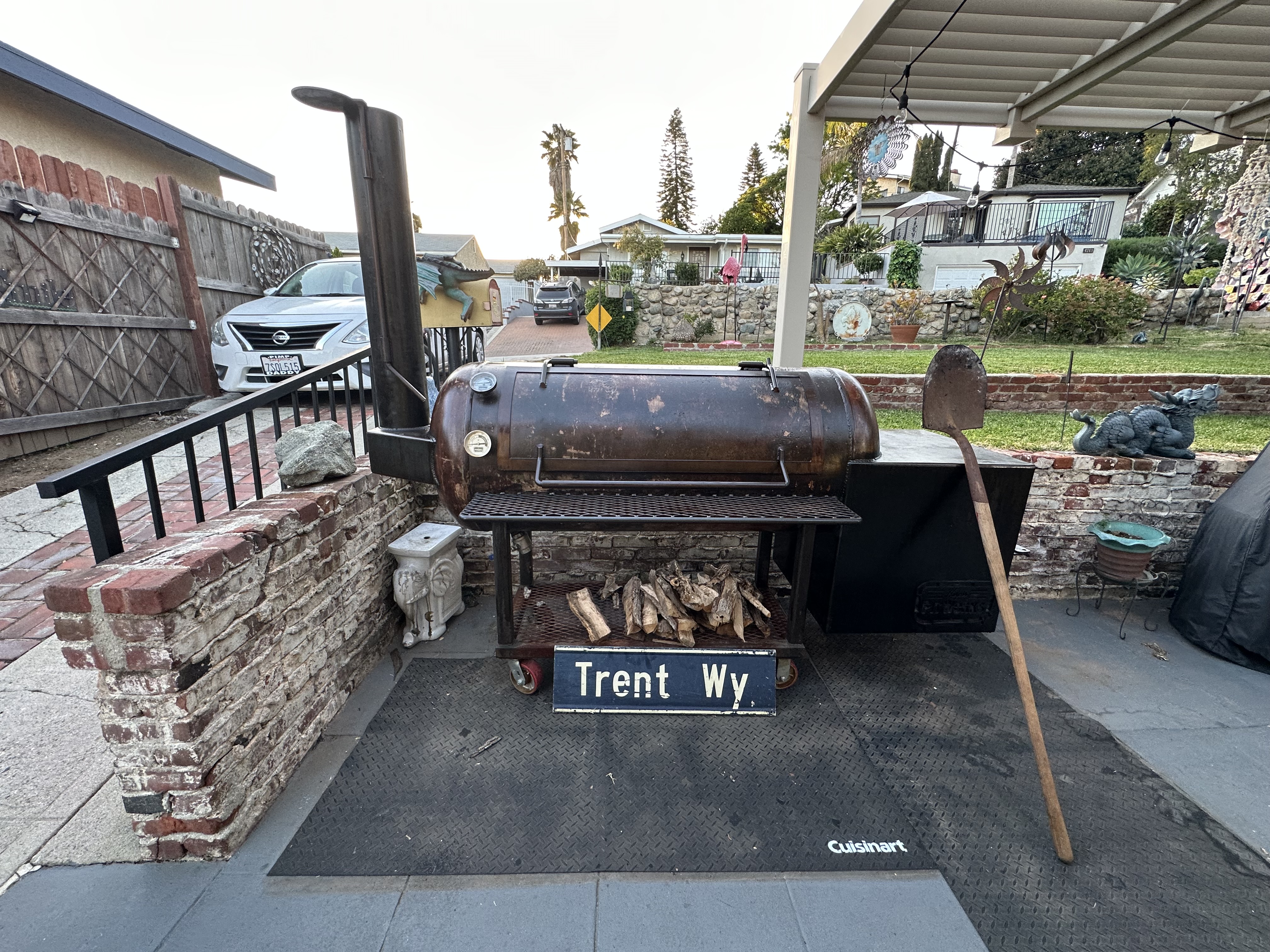 Nestled in Whittier, Lopez spends his weekends under a gray, weathered Quik Shade to shield him from the elements. In a friend’s backyard, his equipment is a welded rust-tinged fire box, bonded together to a marshmallow-colored 1000-gallon propane tank on top of solid iron legs.